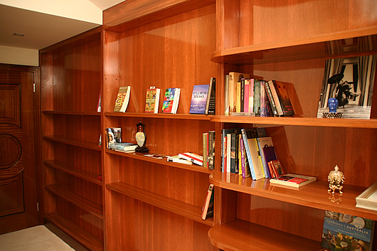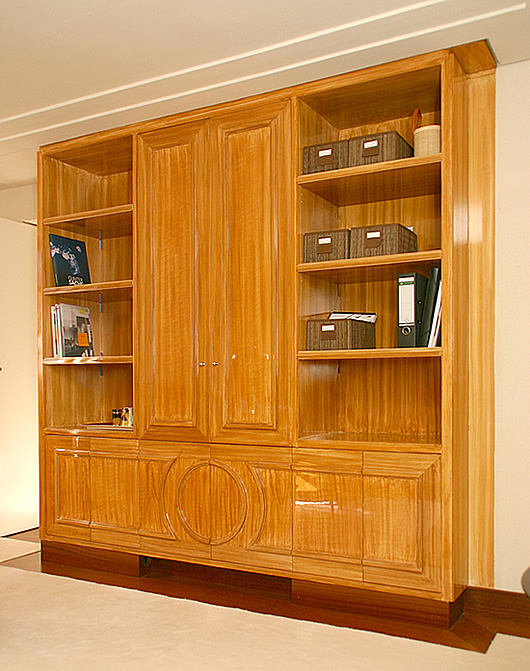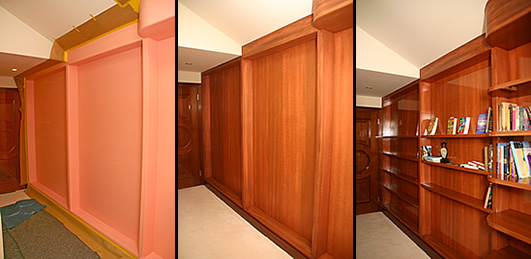 Fertiggestellte Mahagoni-Interpretation einer Schrankwand. Die Malerei wurde der