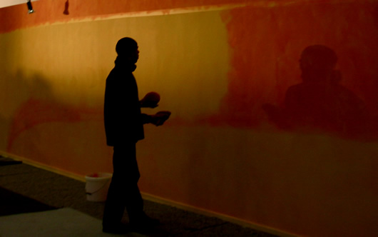 Ebenfalls auf einer Messe entstand ein weiteres Beispiel für ein großes Wandbild. Es wurde als Blickfang für das Forum der "Garten 07" angefertigt. Auch hier wurde in freier Maltechnik vorgegangen. Die Entwürfe zeigen starke Vergrößerungen von Blumenblüten. Die Veranstalter entschieden sich für das Rosenmotiv in leuchtendem Rot.