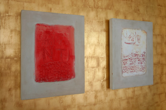 Die beiden Wandausschnitte vor und nach der metallischen Veredelung.